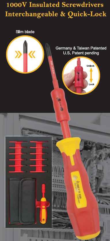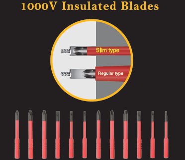 Designed for professional electricians and industrial technicians, the system combines maximum electrical safety with flexibility, allowing users to switch blades quickly while maintaining full insulation protection.