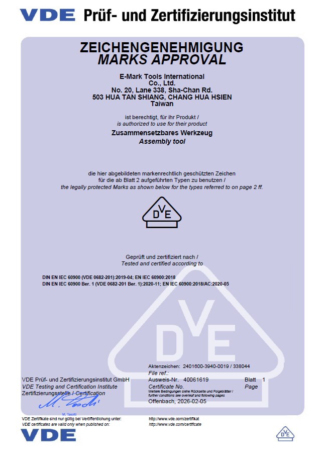 We are proud to announce that our Interchangeable Insulated Screwdriver System officially received VDE certification in February 2026, confirming full compliance with IEC 60900 standards for working on live electrical systems up to 1,000V AC.